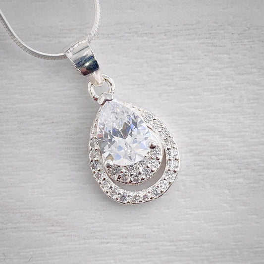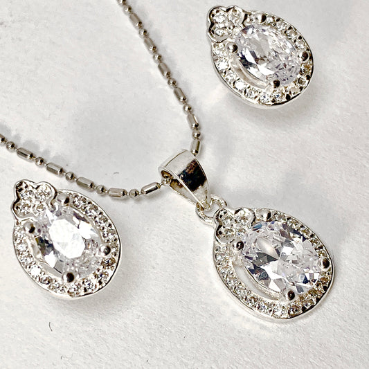Sparkling Teardrop Halo Studs and Pendant Set