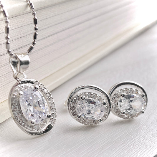 Eclipse Oval Halo Stud and Pendant Set