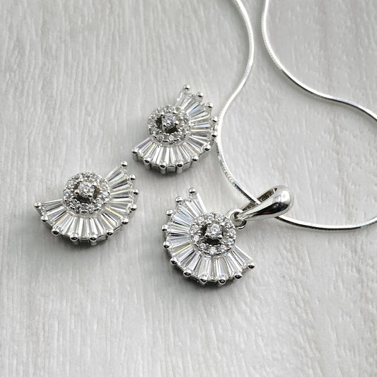 Sunrays Baguette Stud and Pendant Set