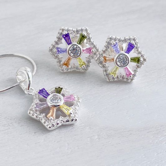 Multicolored Baguette Hexa Stud and Pendant